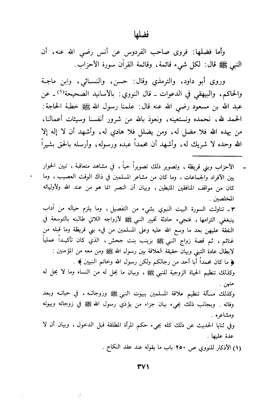 النبي - صلى الله عليه وسلم - قال: لكل شيء قائمة، وقائمة القرآن سورة الأحزاب.