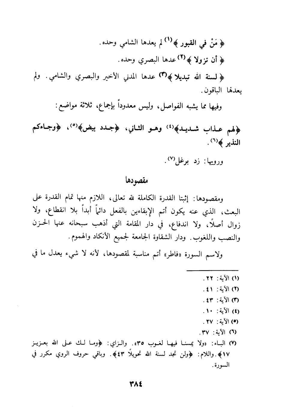 (مَنْ في القبور) لم يعدها الشامي وحده.