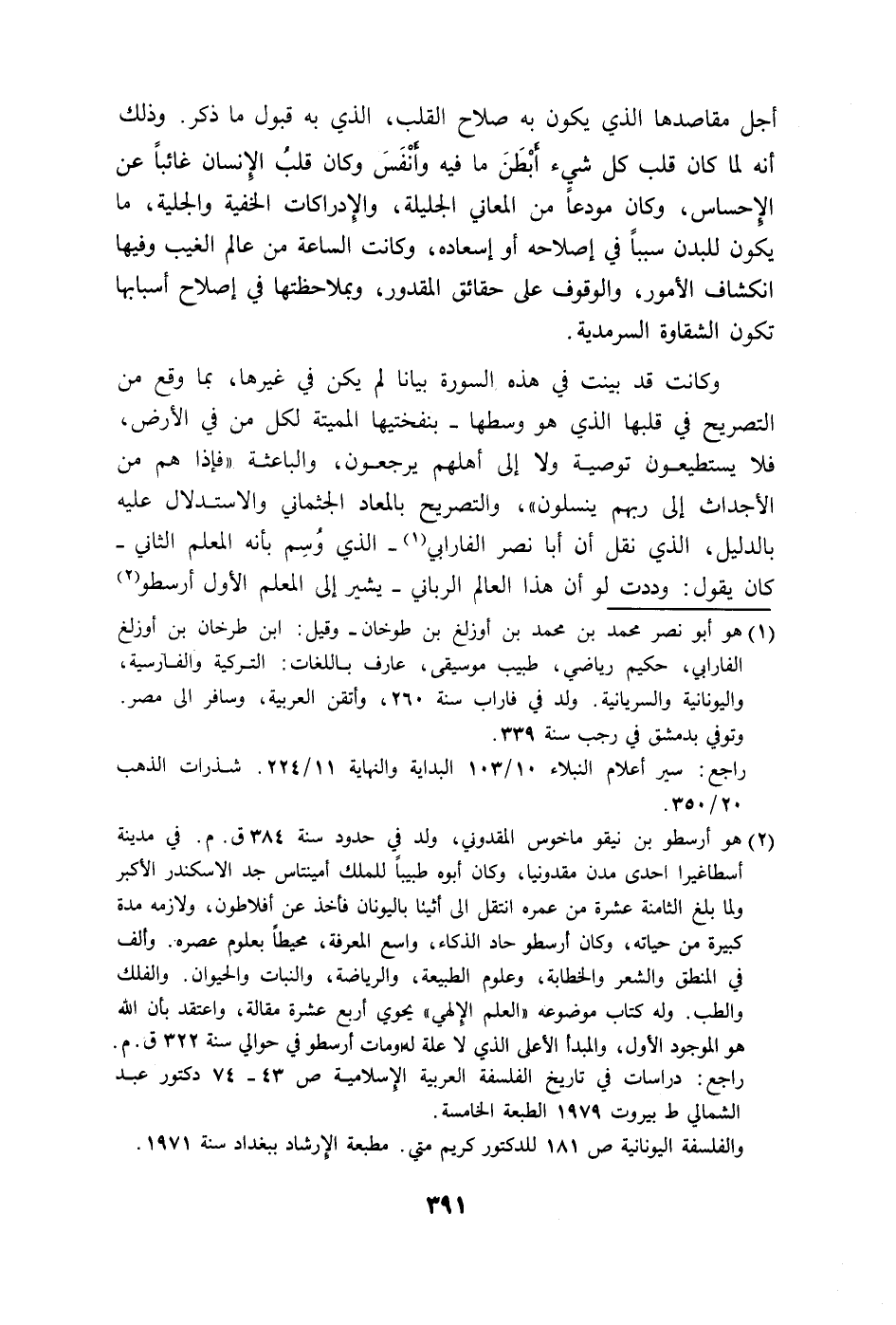 بالدليل، الذي نقل أن أبا نصر الفارابي - الذي وُسِم بأنه العلم الثاني -