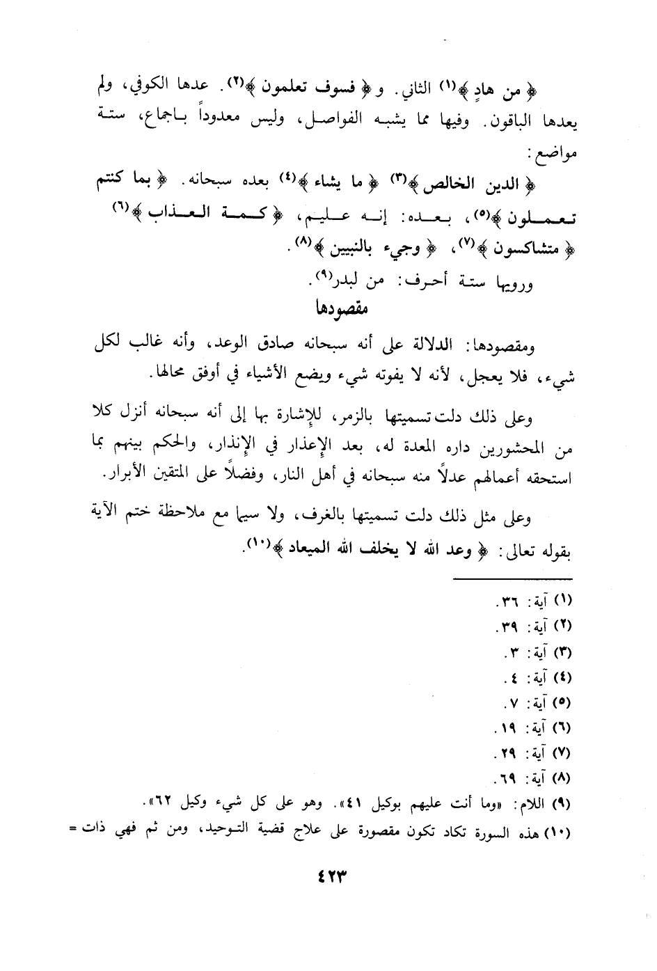(الدين الخالص) (ما يشاء) بعده (بما كنتم تعملون) ، بعده: إنه عليم، (كلمة العذاب) (متشاكسون) ، (وجيء بالنبيين) .