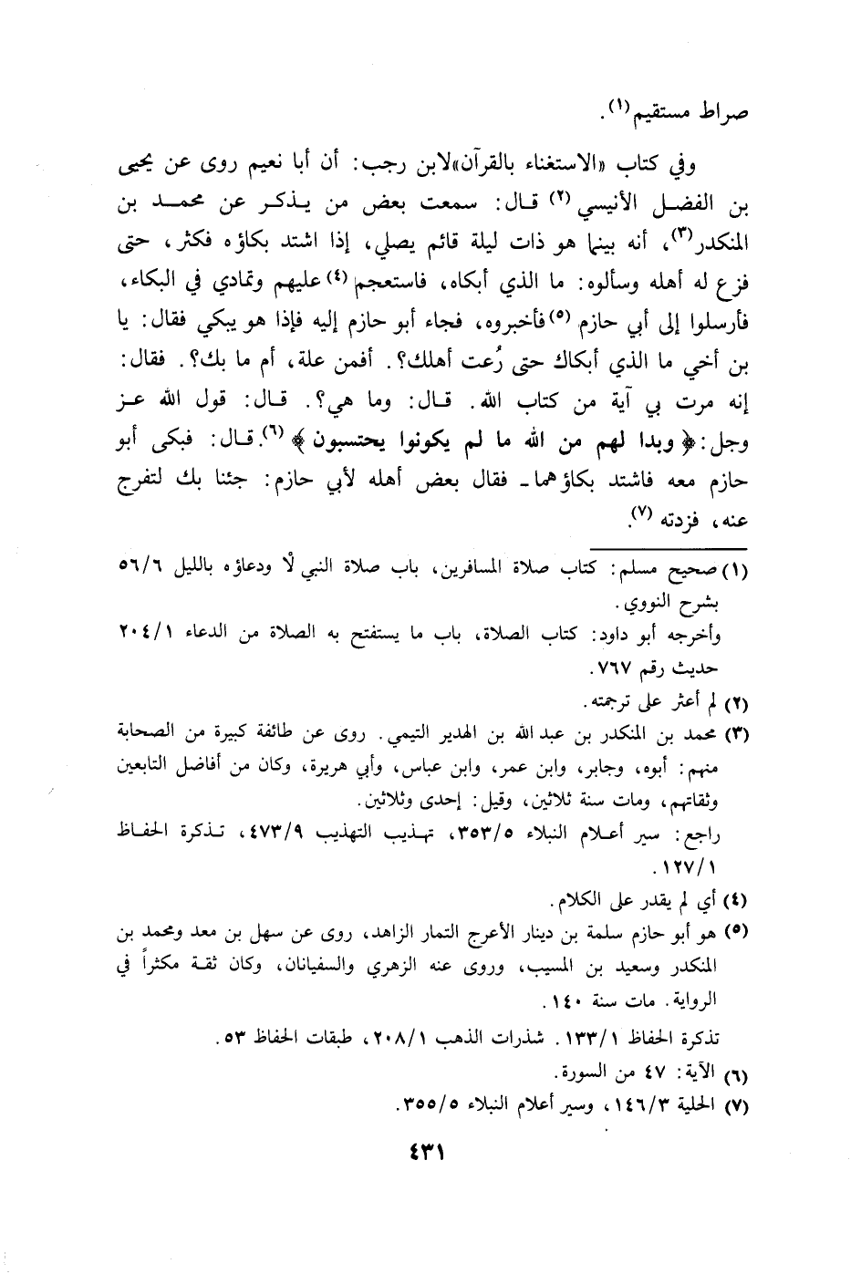وفي كتاب "الاستغناء بالقرآن" لابن رجب: أن أبا نعيم روى عن يحيى
