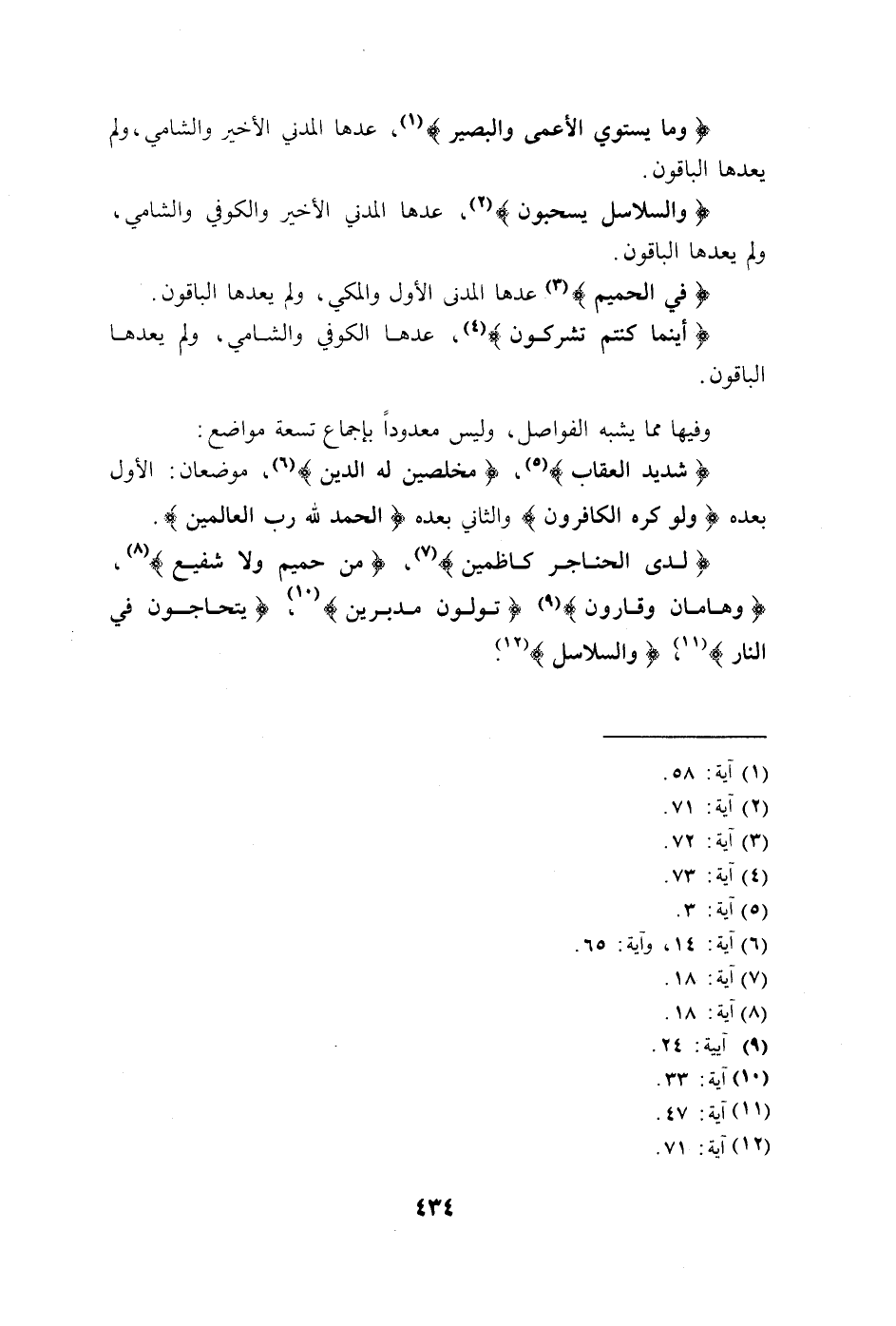 وفيها مما يشبه الفواصل، وليس معدوداً بإجماع تسعة مواضع: