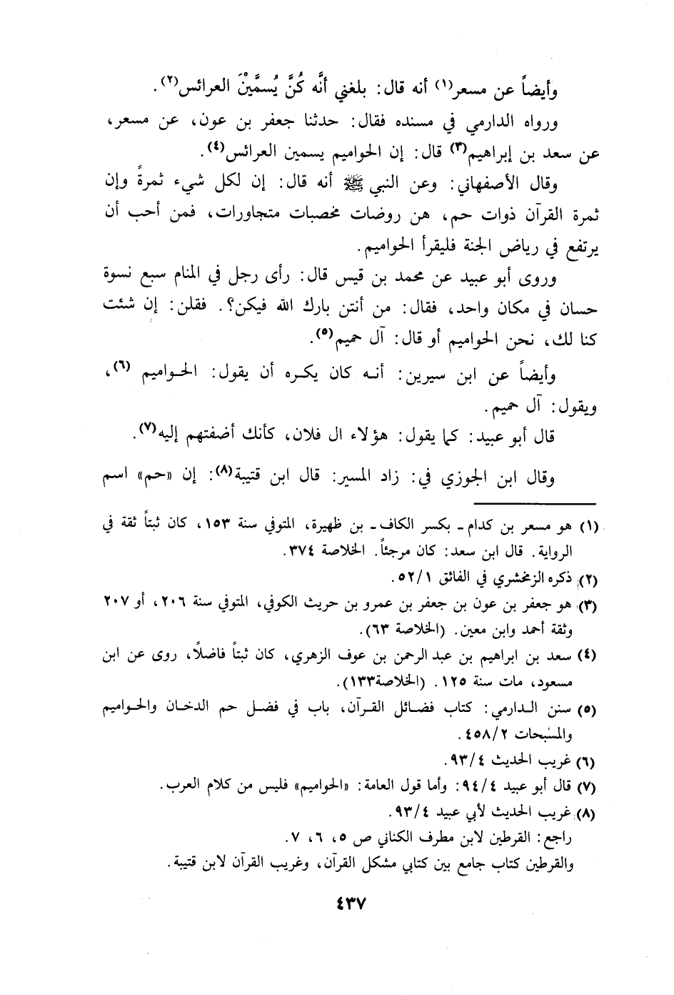 عن سعد بن إبراهيم قال: إن الحواميم يسمين العرائس.