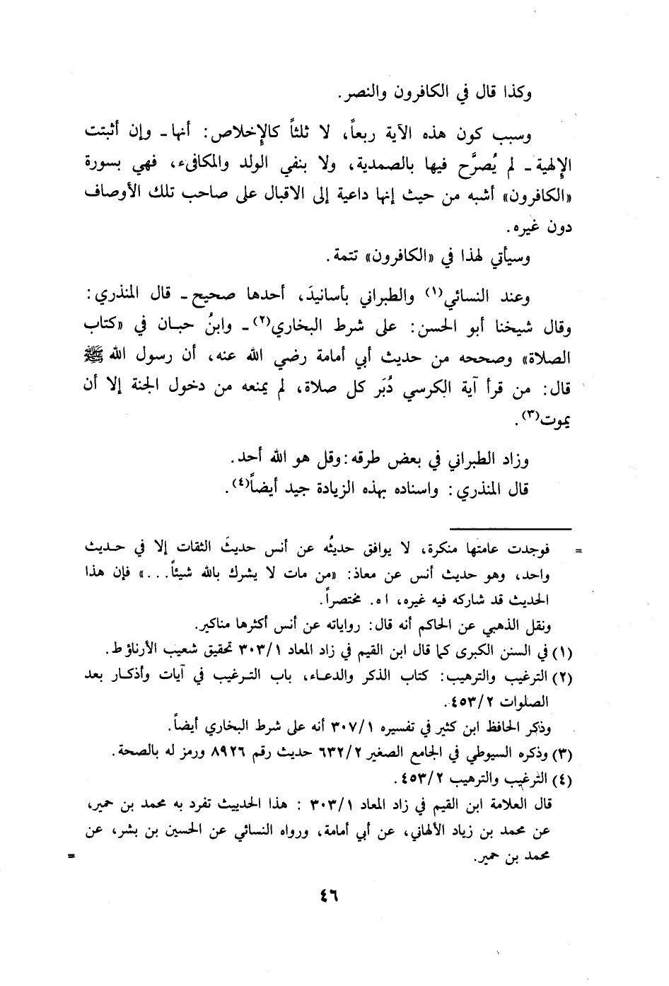 وسبب كون هذه الآية ربعاً، لا ثلثاً كالإِخلاص: أنها - وإن أثبتت