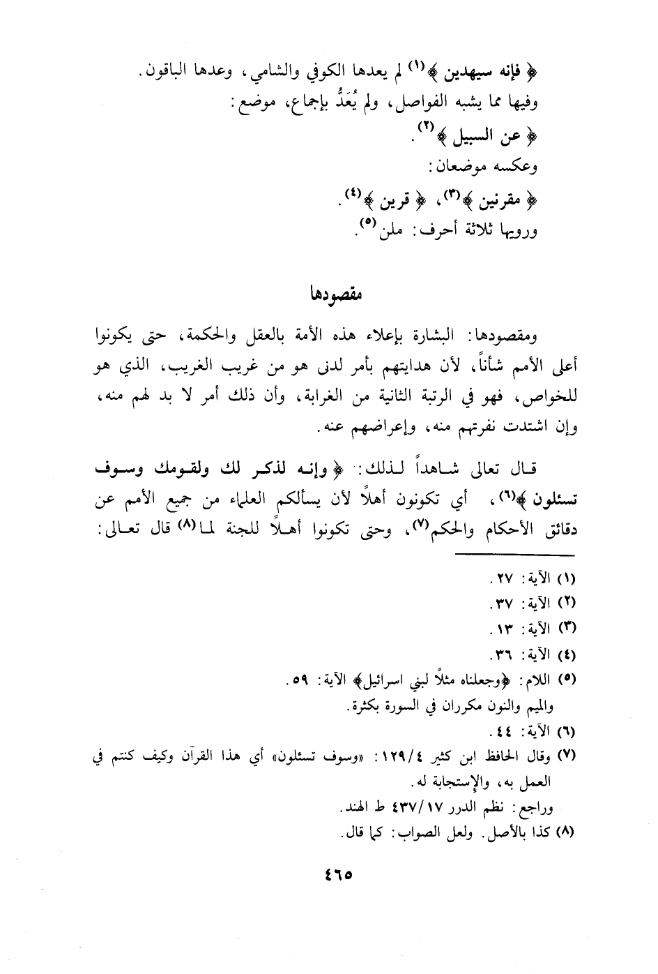 (فإنه سيهدين) ولم يعدها الكوفي والشامي، وعدها الباقون.