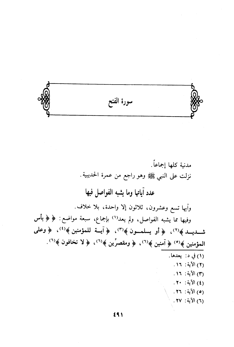 (بأس شديد) ، (أو يسلمون) ، (آية للمؤمنين) ، (وعلى المؤمنين) ، (آمنين) ، (ومقصرِّين) ، (لا تخافون) .