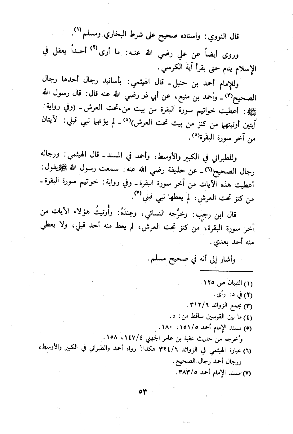 رجال الصحيح - عن حذيفة رضي الله عنه: سمعت رسول الله - صلى الله عليه وسلم - يقول: أعطيت هذه الآيات من آخر سورة البقرة - وفي رواية: خواتيم سورة البقرة -