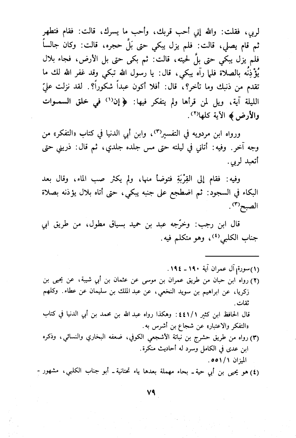 لقد نزلت عليَّ الليلة آية، ويل لمن قرأها ولم يتفكر فيها: (إن في خلق السماوات والأرض) الآية كلها.