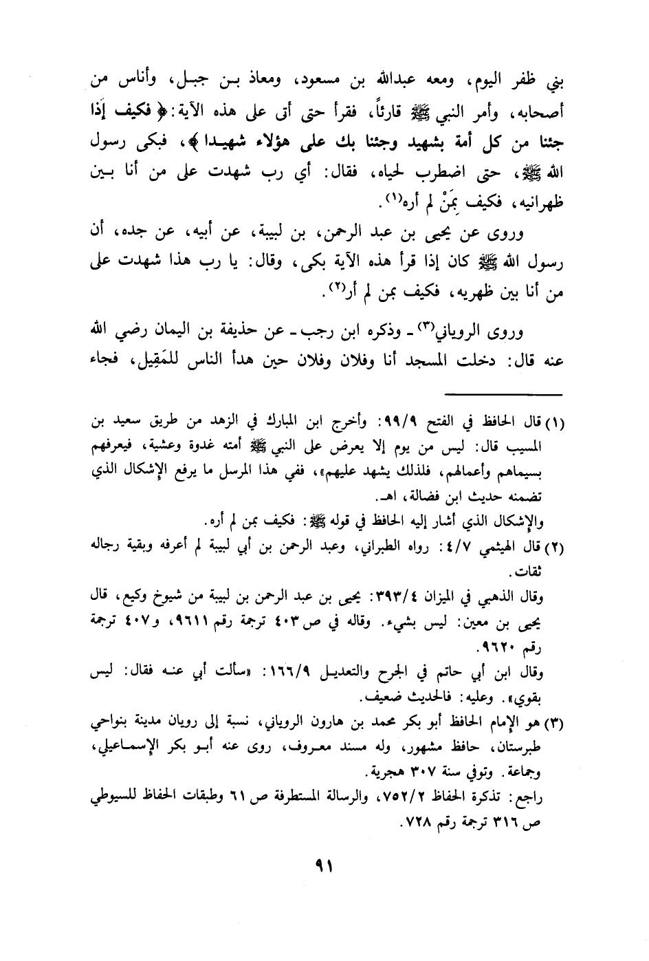 رسول الله - صلى الله عليه وسلم - كان إذا قرأ هذه الآية بكى، وقال: يا رب هذا شهدت على من أنا بين ظهريه، فكيف بمن لم أر.