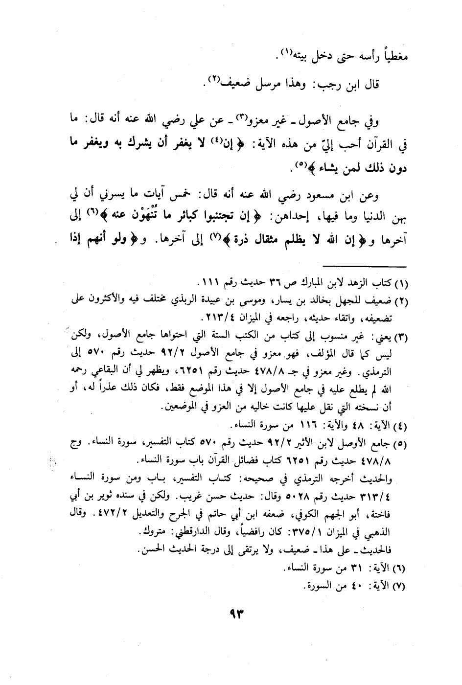 بهن الدنيا وما فيها، إحداهن: (إِنْ تَجْتَنِبُوا كَبَائِرَ مَا تُنْهَوْنَ عَنْهُ نُكَفِّرْ عَنْكُمْ سَيِّئَاتِكُمْ وَنُدْخِلْكُمْ مُدْخَلًا كَرِيمًا (31)