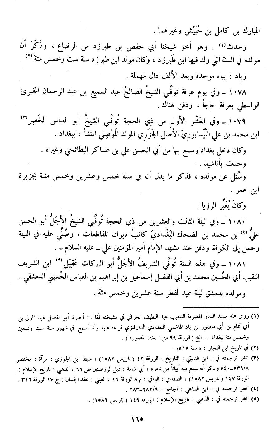 1079 - وفي العشر الأول من ذي الحجة توفي الشيخ أبو العباس الخضر بن محمد بن علي النيسابوري الأصل الجزري المولد الموصلي المنشأ، ببغداد.