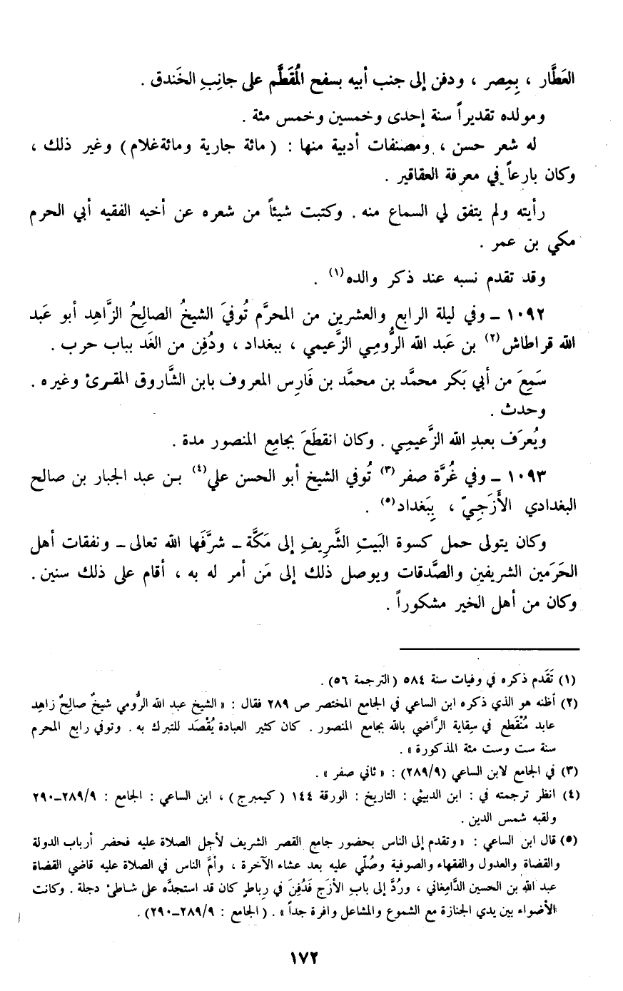 1092 - وفي ليلة الرابع والعشرين من المحرم توفي الشيخ الصالح الزاهد أبو عبد الله قراطاش بن عبد الله الرومي الزعيمي، ببغداد، ودفن من الغد بباب حرب.