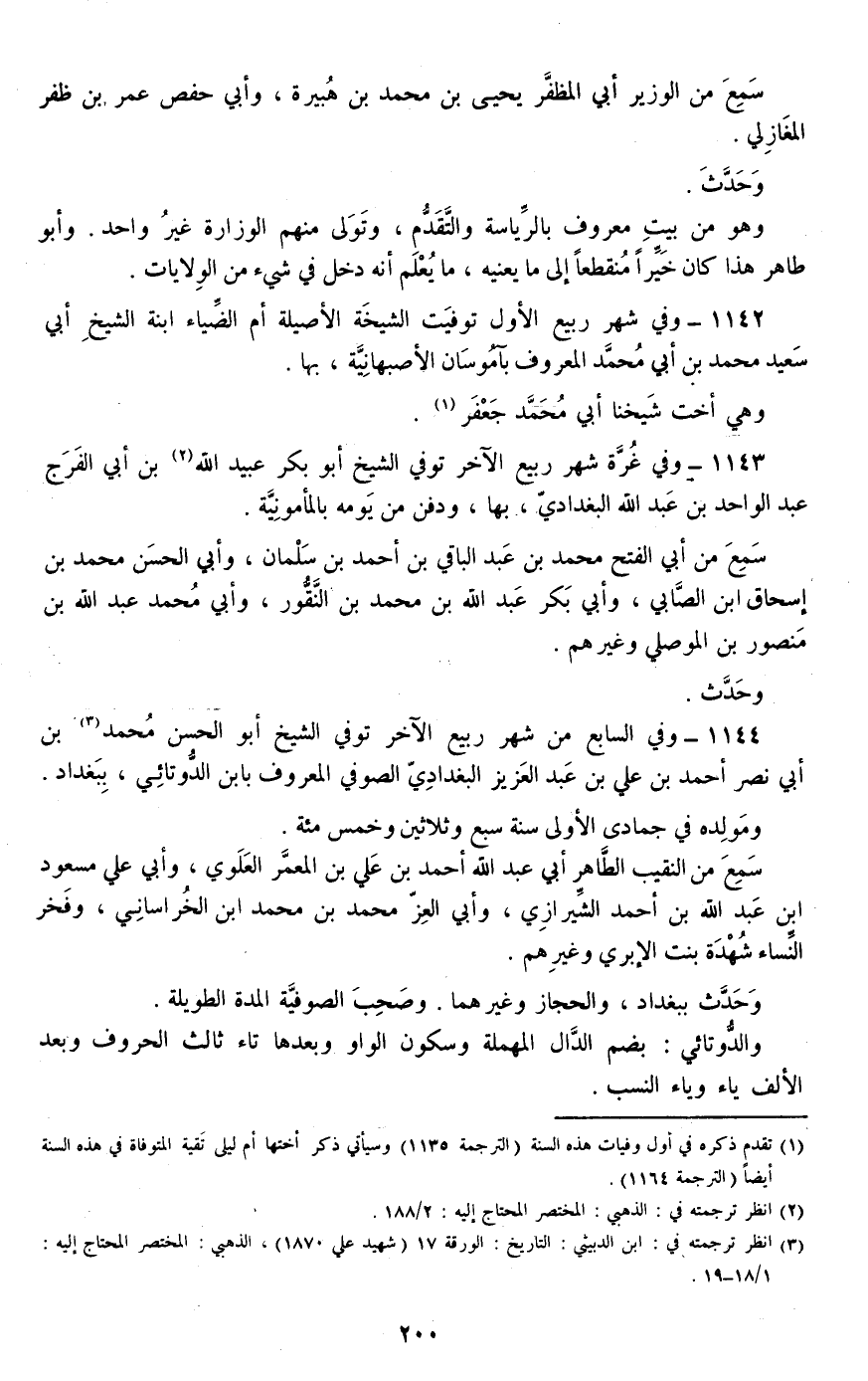 1144 - وفي السابع من شهر ربيع الآخر توفي الشيخ أبو الحسن محمد بن أبي نصر أحمد بن علي بن عبد العزيز البغدادي الصوفي المعروف بابن الدوتائي، ببغداد.