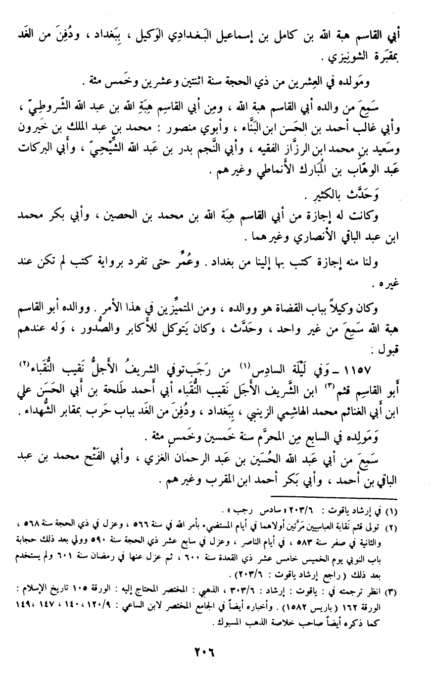 1157 - وفي ليلة السادس من رجب توفي الشريف الأجل نقيب النقباء أبو القاسم قثم ابن الشريف الأجل نقيب النقباء أبي أحمد طلحة بن أبي الحسن علي بن أبي الغنائم محمد الهاشمي الزينبي، ببغداد، ودفن من الغد بباب حرب بمقابر الشهداء.