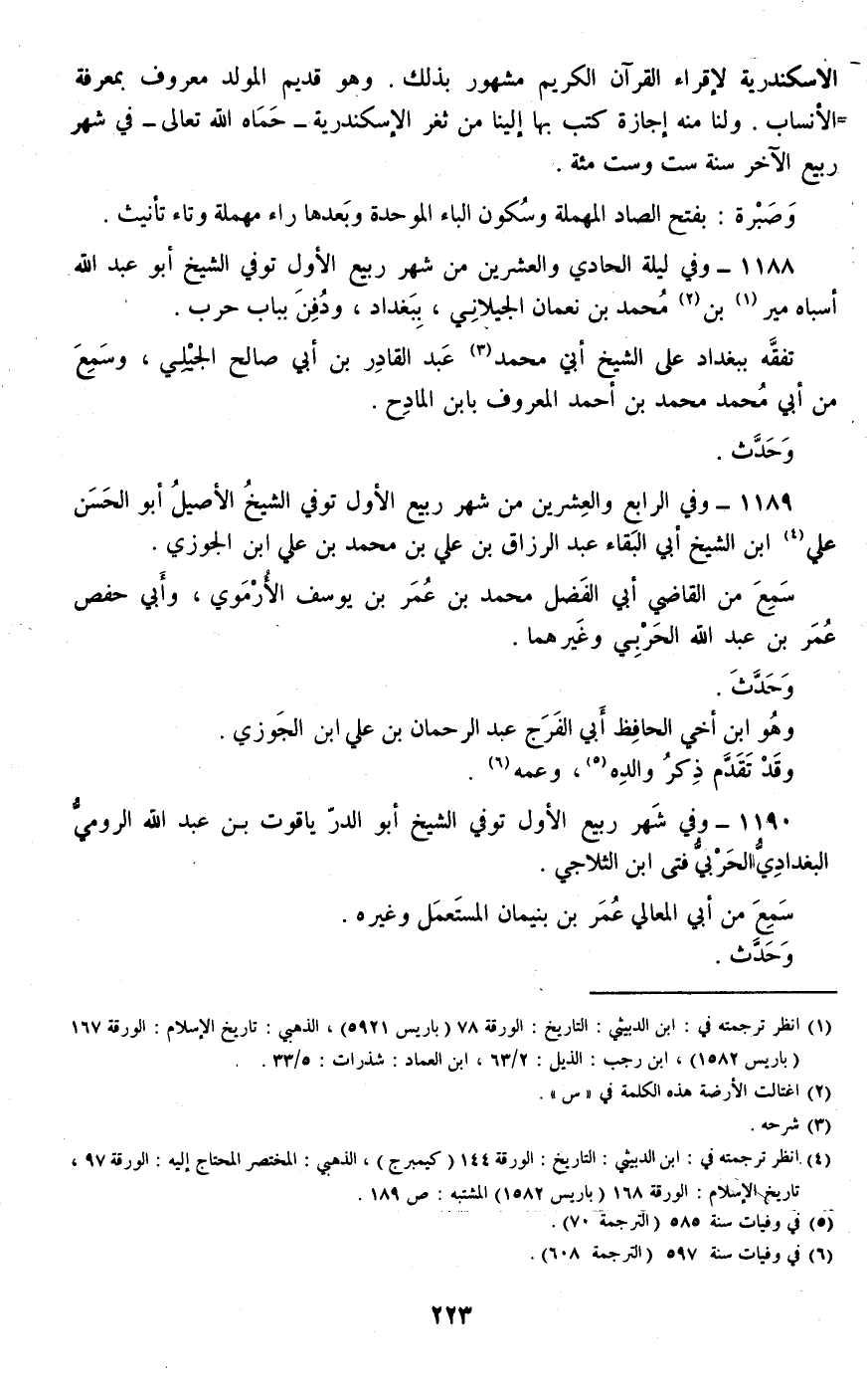 1188 - وفي ليلة الحادي والعشرين من شهر ربيع الأول توفي الشيخ أبو عبد الله أسباه مير بن محمد بن نعمان الجيلاني، ببغداد، ودفن بباب حرب.