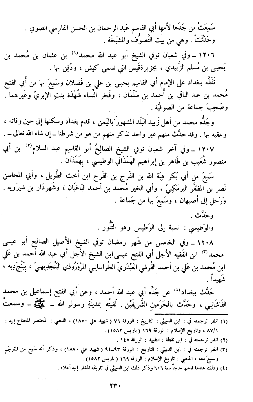 1207 - وفي آخر شعبان توفي الشيخ الصالح أبو القاسم عبد السلام بن أبي منصور شعيب بن طاهر بن إبراهيم الهمذاني الوطيسي، بهمذان.
