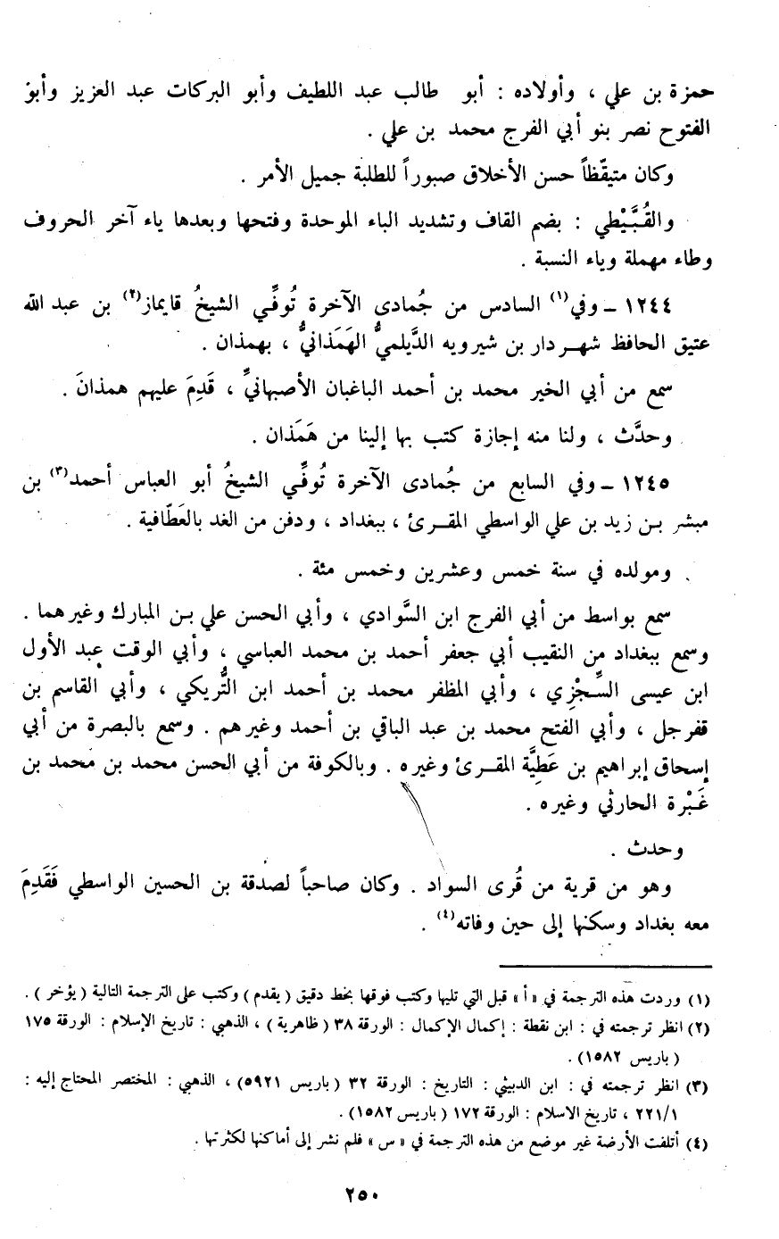 1245 - وفي السابع من جمادى الآخرة توفي الشيخ أبو العباس أحمد بن مبشر بن زيد بن علي الواسطي المقرئ، ببغداد، ودفن من الغد بالعطافية.