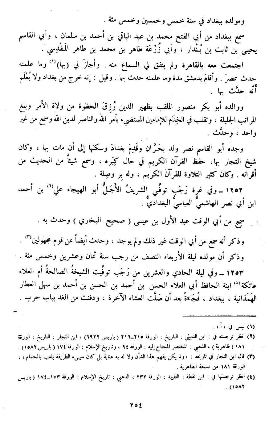 1252 - وفي غرة رجب توفي الشريف الأجل أبو الهيجاء علي بن أحمد بن أبي نصر الهاشمي العباسي البغدادي.