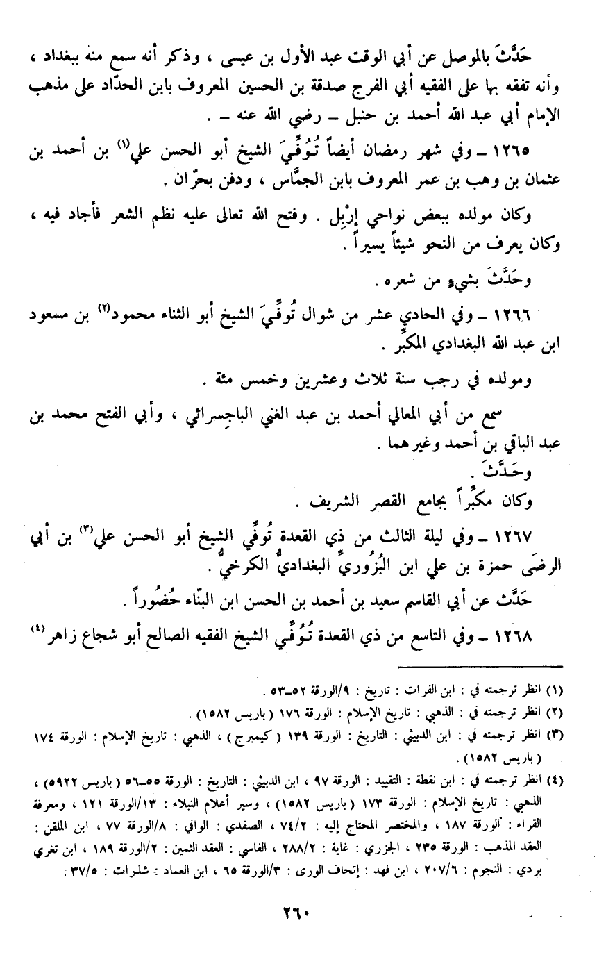 1265 - وفي شهر رمضان أيضا توفي الشيخ أبو الحسن علي بن أحمد بن عثمان بن وهب بن عمر المعروف بابن الجماس، ودفن بحران.