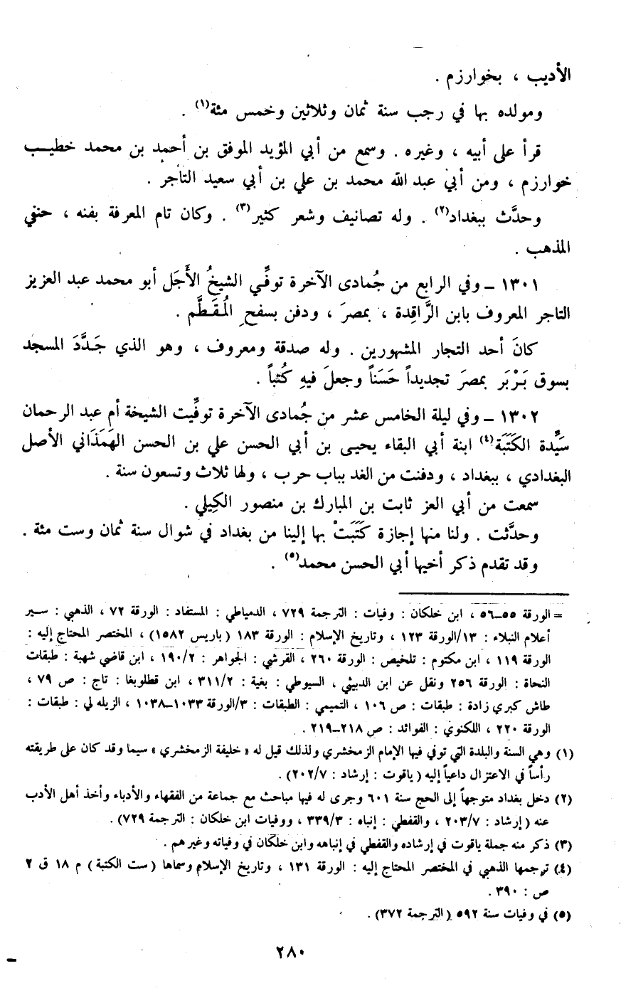 1302 - وفي ليلة الخامس عشر من جمادى الآخرة توفيت الشيخة أم عبد الرحمان سيدة الكتبة ابنة أبي البقاء يحيى بن أبي الحسن علي بن الحسن الهمذاني الأصل البغدادي، ببغداد، ودفنت من الغد بباب حرب، ولها ثلاث وتسعون سنة.
