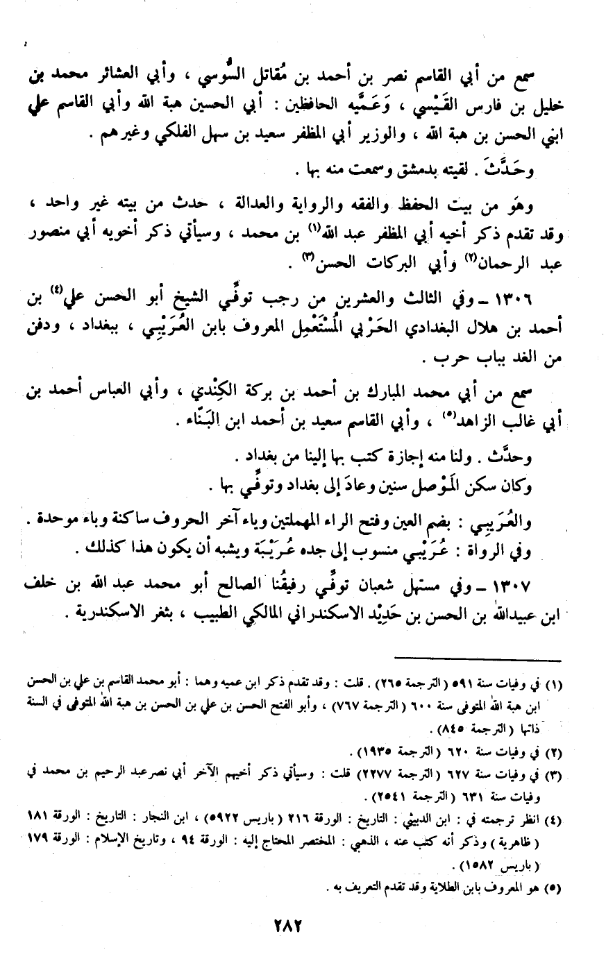 1306 - وفي الثالث والعشرين من رجب توفي الشيخ أبو الحسن علي بن أحمد بن هلال البغدادي الحربي المستعمل المعروف بابن العريبي، ببغداد، ودفن من الغد بباب حرب.