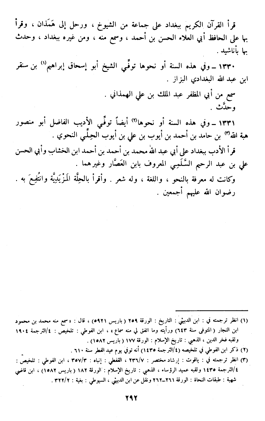 1330 - وفي هذه السنة أو نحوها توفي الشيخ أبو إسحاق إبراهيم بن سنقر بن عبد الله البغدادي البزاز.