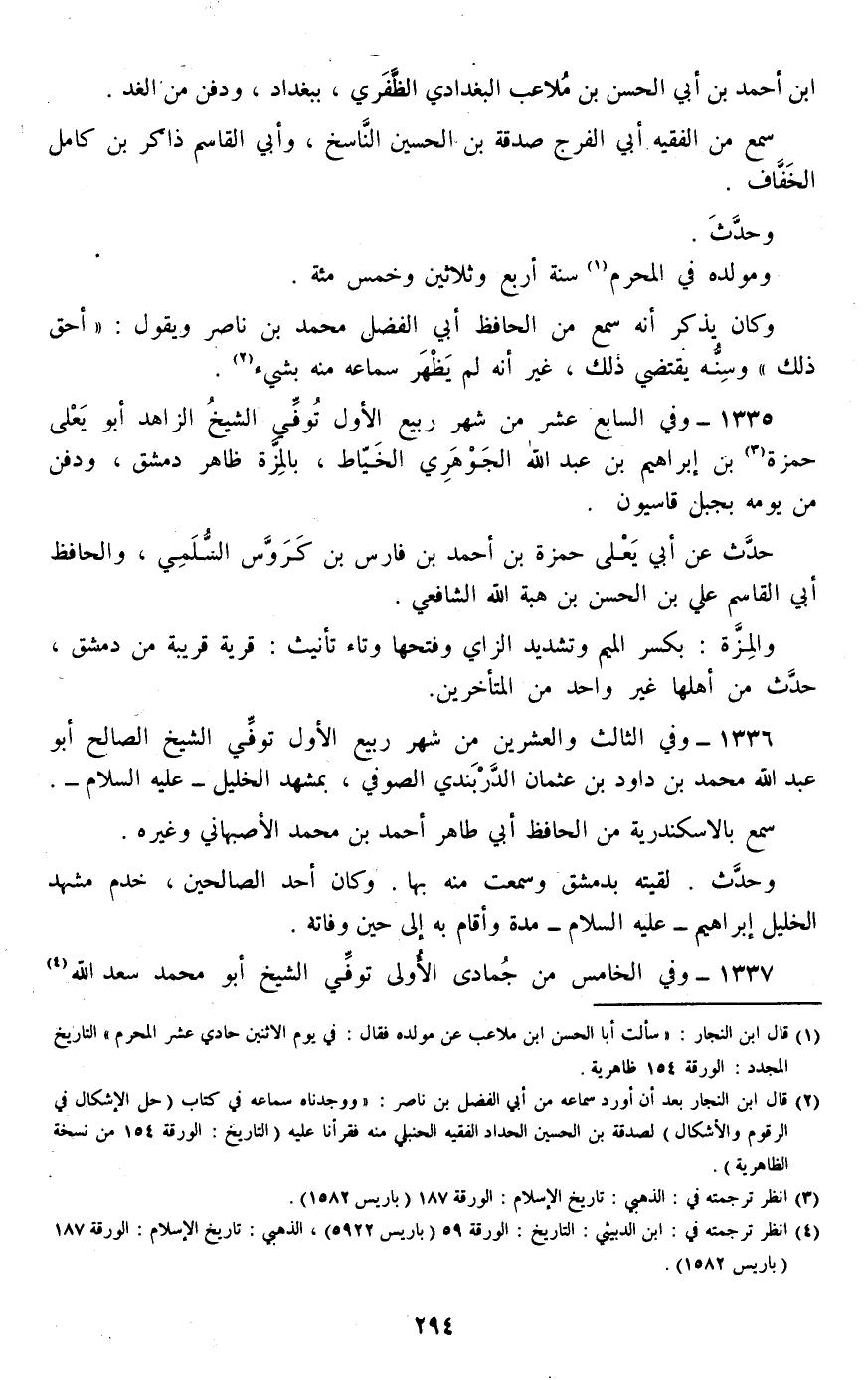 1335 - وفي السابع عشر من شهر ربيع الأول توفي الشيخ الزاهد أبو يعلى حمزة بن إبراهيم بن عبد الله الجوهري الخياط، بالمزة ظاهر دمشق، ودفن من يومه بجبل قاسيون.