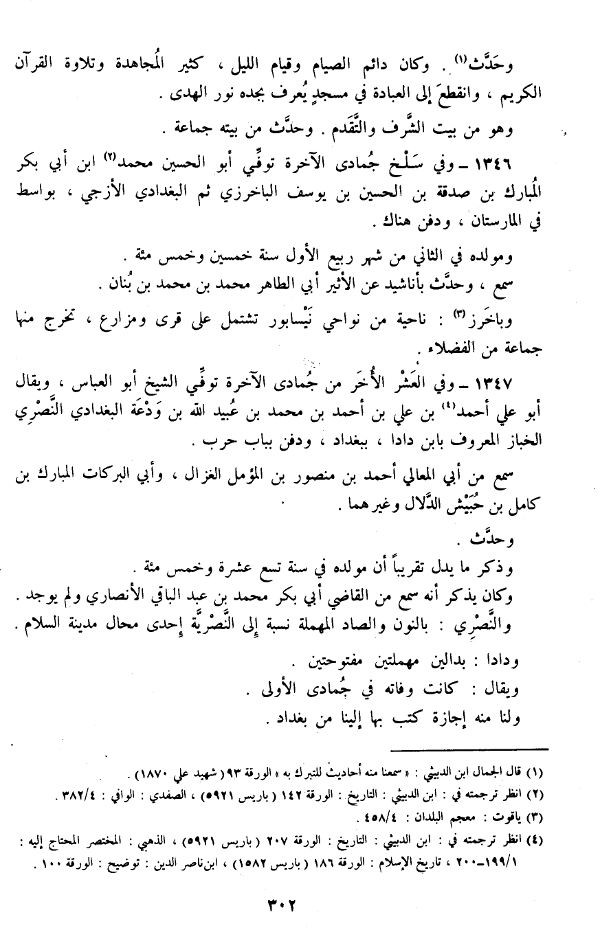 1347 - وفي العشر الأخر من جمادى الآخرة توفي الشيخ أبو العباس، ويقال أبو علي أحمد بن علي بن أحمد بن محمد بن عبيد الله بن ودعة البغدادي النصري الخباز المعروف بابن دادا، ببغداد، ودفن بباب حرب.