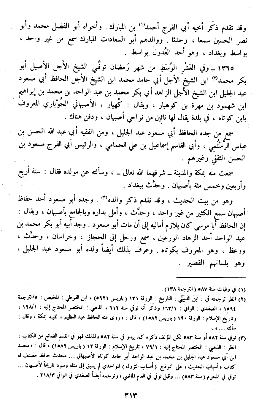 1365 - وفي العشر الوسط من شهر رمضان توفي الشيخ الأجل الأصيل أبو بكر محمد ابن الشيخ الأجل أبي حامد محمد ابن الشيخ الأجل الحافظ أبي مسعود عبد الجليل ابن الشيخ الأجل الزاهد أبي بكر محمد بن عبد الواحد بن محمد بن إبراهيم بن شهمود بن مهرة بن كوهيار، ويقال: كهيار، الأصبهاني الجوباري المعروف بابن كوتاه، في بلدة يقال لها نائين من نواحي أصبهان، ودفن هناك.