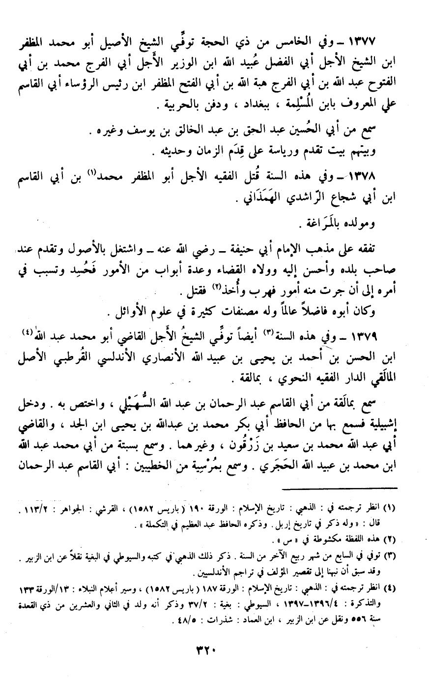 1378 - وفي هذه السنة قتل الفقيه الأجل أبو المظفر محمد بن أبي القاسم بن أبي شجاع الراشدي الهمذاني.