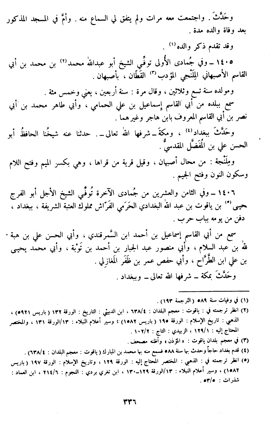 1405 - وفي جمادى الأولى توفي الشيخ أبو عبد الله محمد بن محمد بن أبي القاسم الأصبهاني الملنجي المؤدب القطان، بأصبهان.