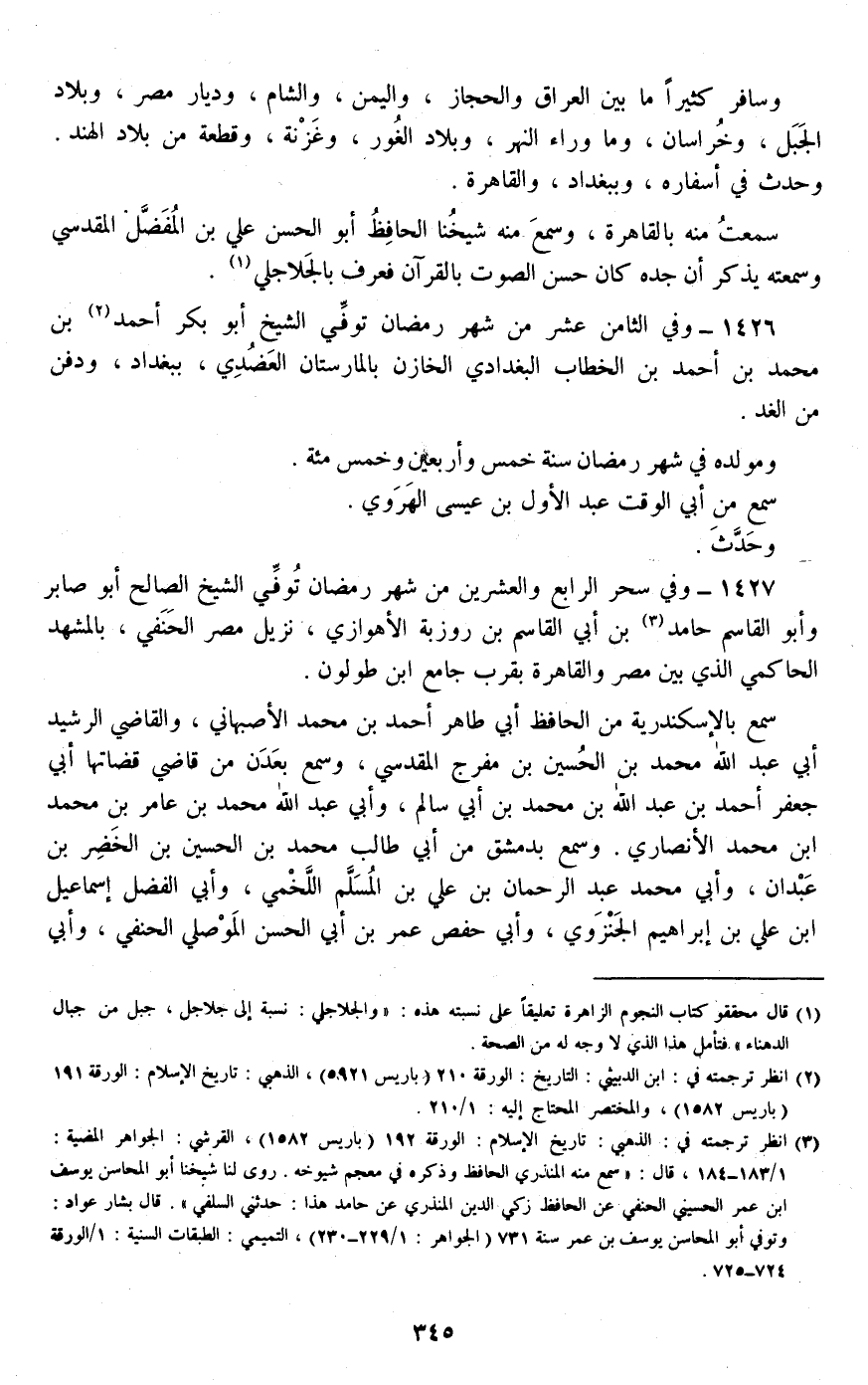 1427 - وفي سحر الرابع والعشرين من شهر رمضان توفي الشيخ الصالح أبو صابر وأبو القاسم حامد بن أبي القاسم بن روزبة الأهوازي، نزيل مصر الحنفي، بالمشهد الحاكمي الذي بين مصر والقاهرة بقرب جامع ابن طولون.