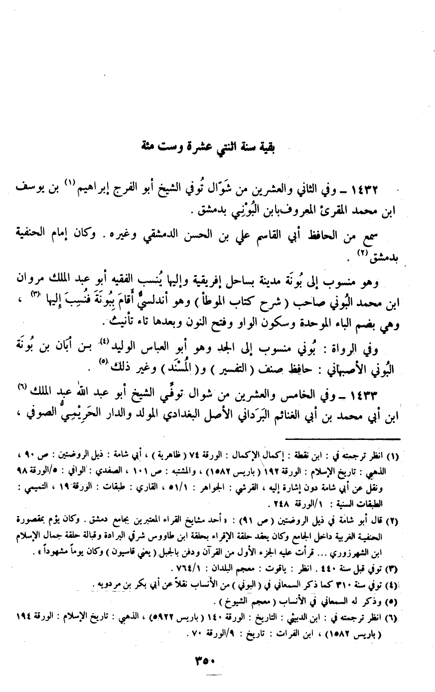 1432 - وفي الثاني والعشرين من شوال توفي الشيخ أبو الفرج إبراهيم بن يوسف بن محمد المقرئ المعروف بابن البوني بدمشق.