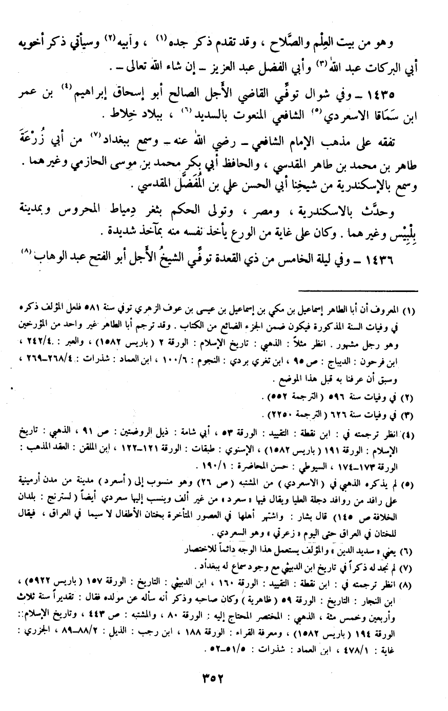 1435 - وفي شوال توفي القاضي الأجل الصالح أبو إسحاق إبراهيم بن عمر بن سماقا الاسعردي الشافعي المنعوت بالسديد، ببلاد خلاط.