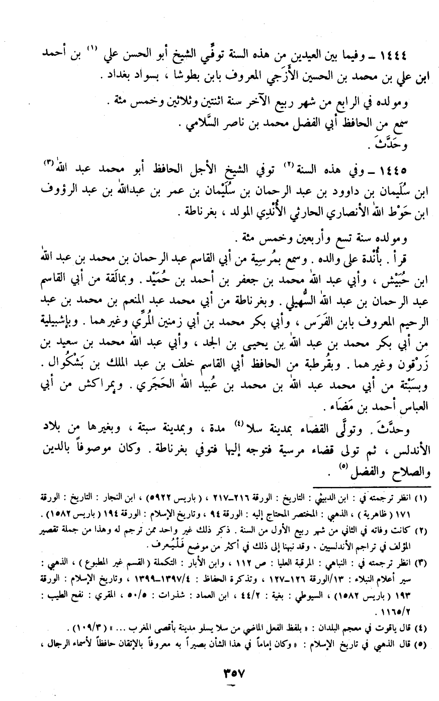 1445 - وفي هذه السنة توفي الشيخ الأجل الحافظ أبو محمد عبد الله بن سليمان بن داوود بن عبد الرحمان بن سليمان بن عمر بن عبد الله بن عبد الرؤوف بن حوط الله الأنصاري الحارثي الأندي المولد، بغرناطة.