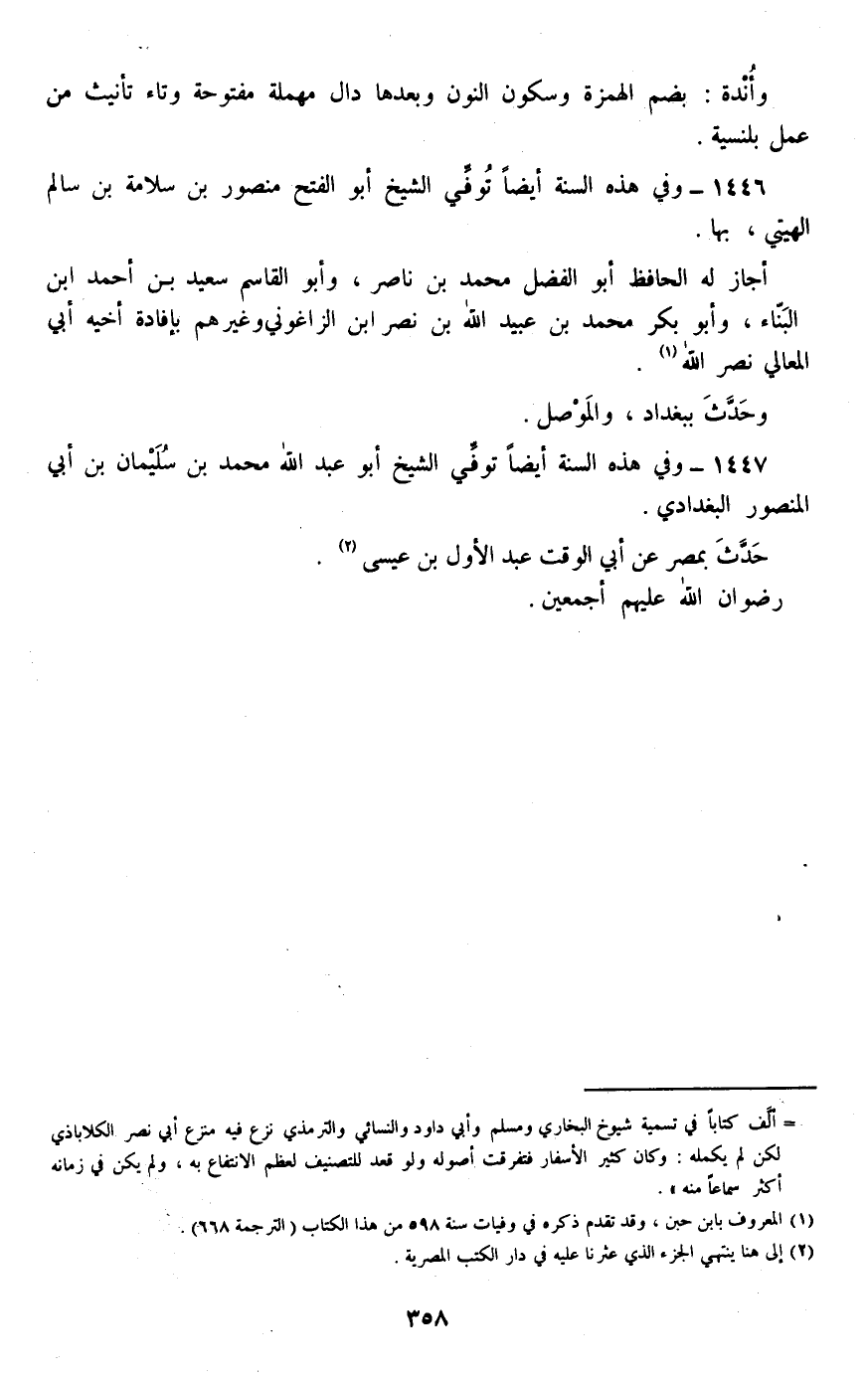 1447 - وفي هذه السنة أيضا توفي الشيخ أبو عبد الله محمد بن سليمان بن أبي المنصور البغدادي.