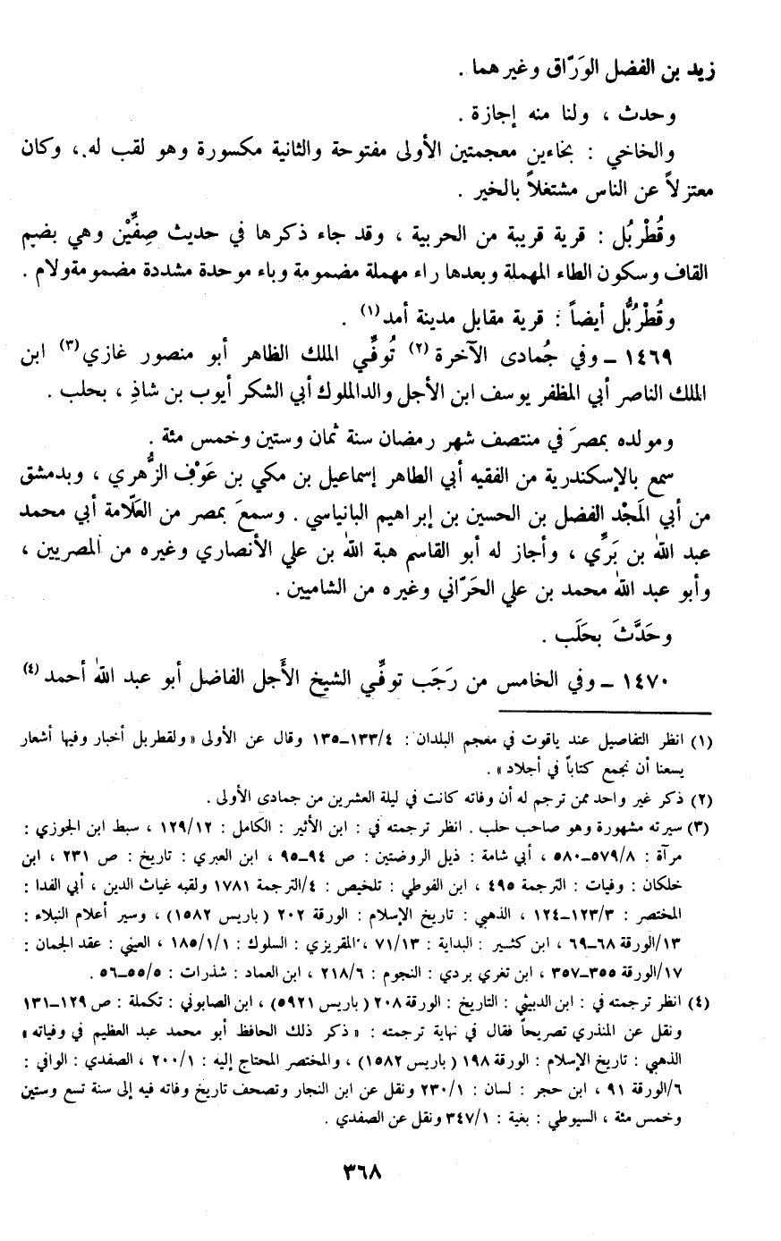 1470 - وفي الخامس من رجب توفي الشيخ الأجل الفاضل أبو عبد الله أحمد بن علي بن مسعود بن عبد الله بن الحسن بن عطاف البغدادي الدارقزي الخطابي المقرئ الوراق المعروف بابن السقاء، #369# ببغداد ودفن من الغد بباب حرب.