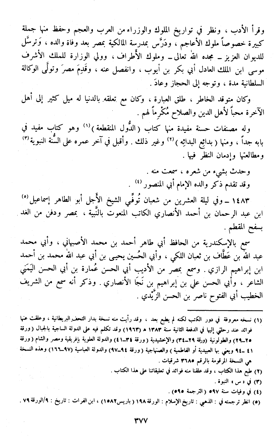 1483 - وفي ليلة العشرين من شعبان توفي الشيخ الأجل أبو الطاهر إسماعيل بن عبد الرحمان بن أحمد الأنصاري الكاتب المنعوت بالنبيه، بمصر ودفن من الغد بسفح المقطم.