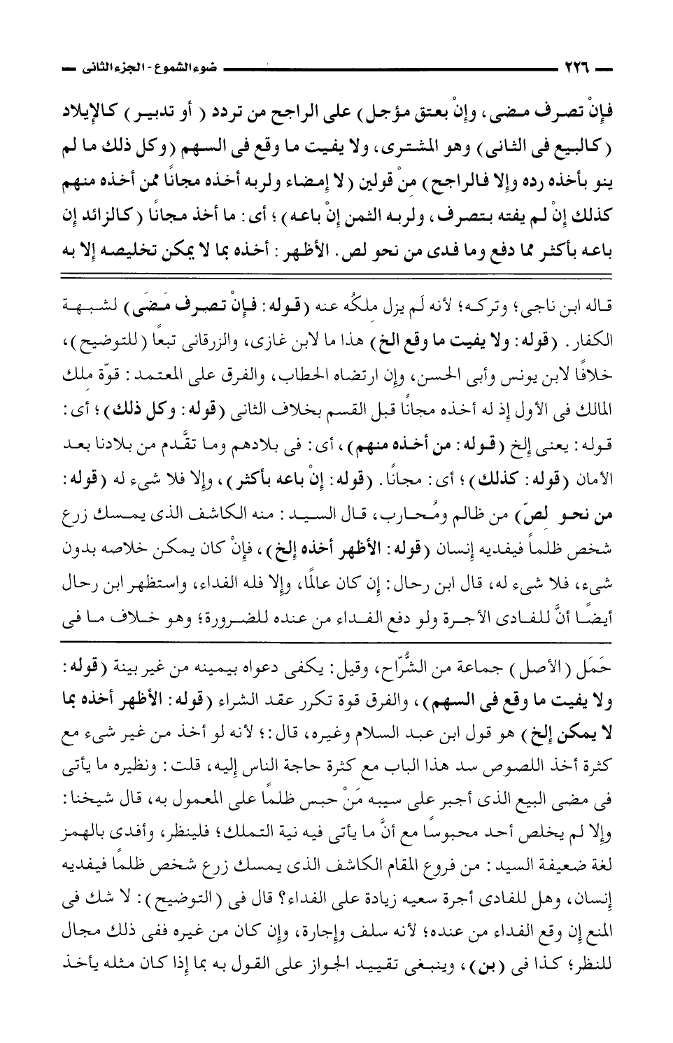 حمل (الأصل) جماعة من الشراح، وقيل: يكفي دعواه بيمنيه من غير بينة (قوله: ولا يفيت ما وقع في السهم)، والفرق قوة تكرر عقد الشراء (قوله: الأظهر أخذه بما لا يمكن الخ) هو قول ابن عبد السلام وغيره، قال: ؛ لأنه أخذ من غير شيء مع كثرة أخذ اللصوص سد هذا الباب مع كثرة حاجة الناس إليه، قلت: ونظيره ما يأتي في مضي البيع الذي أجبر على سيبه من حبس ظلمًا من المعمول به قال شيخنا: وإلا لم يخلص أحد محبوسًا مع أن ما يأتي فيه نية التملك فلينظر، وأفدي بالهمز لغة ضعيفة السيد: من فروع المقام الكاشف الذي يمسك زرع شخص ظلمًا فيفديه إنسان، وهل للفادي أجره سعيه زيادة على الفداء؟ قال في (التوضيح): لاشك في المنع إن وقع الفداء من عنده؛ لأنه سلف وإجارة، وإن كان من غيره ففي ذلك مجال للنظر؛ كذا في (بن)، وينبغي تقييد الجواز على القول بما إذا كان مثله يأخذ