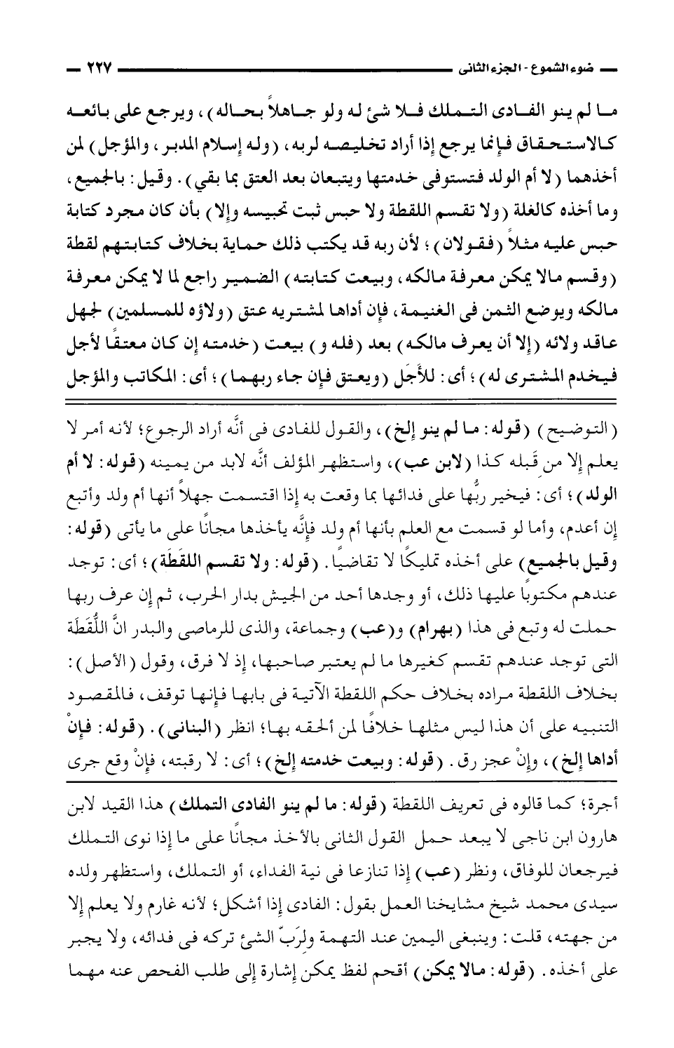 خلاف ما في (التوضيح) (قوله: ما لم ينو الخ)، والقول للفادي في أنه أراد الرجوع؛ لأنه أمر لا يعلم إلا من قبله كذا (لابن عب، واستظهر المؤلف أنه لا بد من يمينه (قوله: لا أم الولد)؛ أي: فيخير ربها على فدائها بما وقعت به إذا اقتسمت جهلاً أنها (قوله: لا أم الولد)؛ أي: فيخير ربها على فدائها بما وقعت به إذا اقتسمت جهلاً أنها ولد فإنه يأخذها مجانًا على ما يأتي (قوله: وقيل بالجميع) على أخذه تمليكًا لا تقاضيًا، (قوله: ولا تقسم اللقطة)؛ أي: توجد عندهم مكتوبًا عليها ذلك، أم وجدها أحد من الجيش بدار الحرب، ثم إن عرف ربها حملت له وتبع في هذا (بهرام) و (عب) وجماعة، والذي للرماصي والبدر إن اللقطة التي توجد عندهم تقسم كغيرها ما لم يعتبر صاحبها، إذ لا فرق، وقول (الأصل): بخلاف اللقطة مراده بخلاف حكم اللقطة الآتية في بابها فإنها توقف، فالمقصود التنبيه على أن هذا ليس مثلها خلافًا لمن ألحقه بها؛ أنظر (البناني)، (قوله: فإن أداها الخ)، وإن عجز رق (قوله: وبيعت خدمته الخ)؛ أي لا رقبته، فإن وقع
