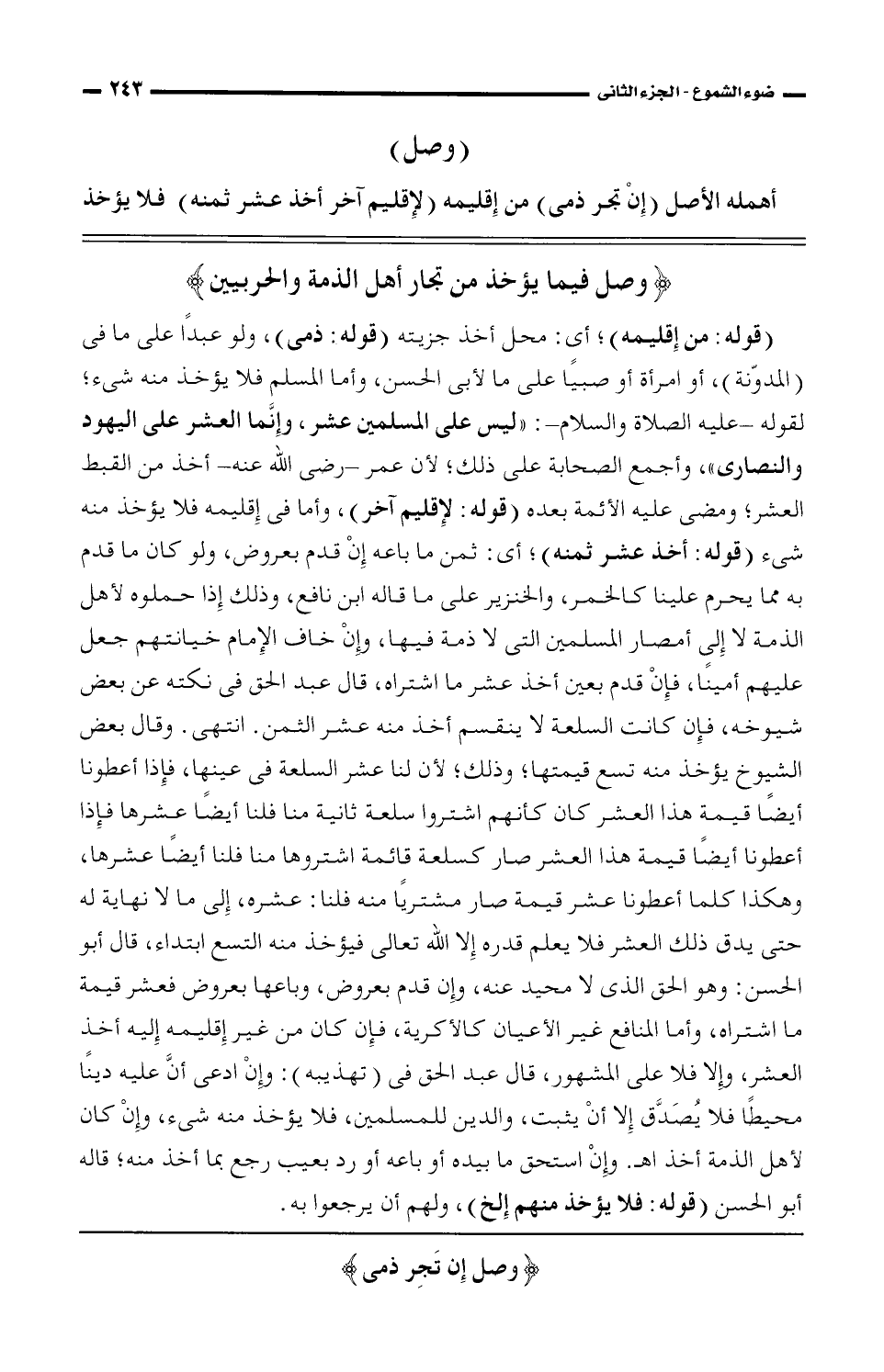 (وصل فيما يؤخذ من تجار أهل الذمة والحربيين)