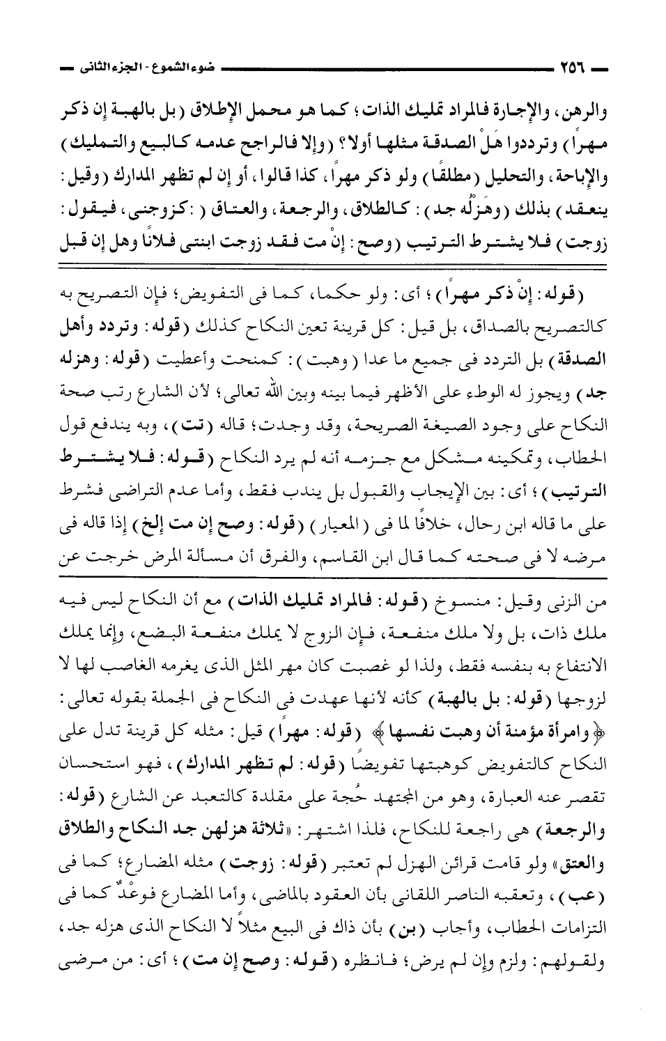 والرهن، والإجارة فالمراد تمليك الذات؛ كما هو محمل الإطلاق (بل بالهبة إن ذكر مهرًا) وترددوا هل الصدقة مثلها أولاً؟ (وإفلا فالراجح عدمه كالبيع والتمليك والإباحة، والتحليل (مطلقًا) ولو ذكر مهرًا، كذا قالوا، أو إن لم تظهر المدارك (وقيل: ينعقد) بذلك (وهز له جد): كالطلاق، والرجعة، والعتق (كزوجني، فيقول: زوجت) فلا يشترط الترتيب (وصح: إن مت فقد زوجت أبنتي فلانًا وهل إن قبل