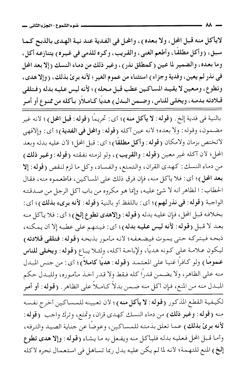 لكيفية القطع المذكور (قوله: لا يأكل منه)؛ لأن تعيينه للمساكين أخرج نفسه منه (قوله: وغير ذلك) من دماء النسك كهدى قران، وتمتع، وترك واجب (قوله: لأنه برئ بذلك) عما تعلق بذمته للمساكين، وعوضًا عن جناية الصيد والترفه، وأما قبل المحل فعليه بدله فليأكل منه ويفعل به ما يشاء (قوله: وإلا هدى تطوع إلخ) المنع للتهمة؛ لأنه لما لم يكن عليه بدل ربما تساهل فى استعمال نحره لأكله