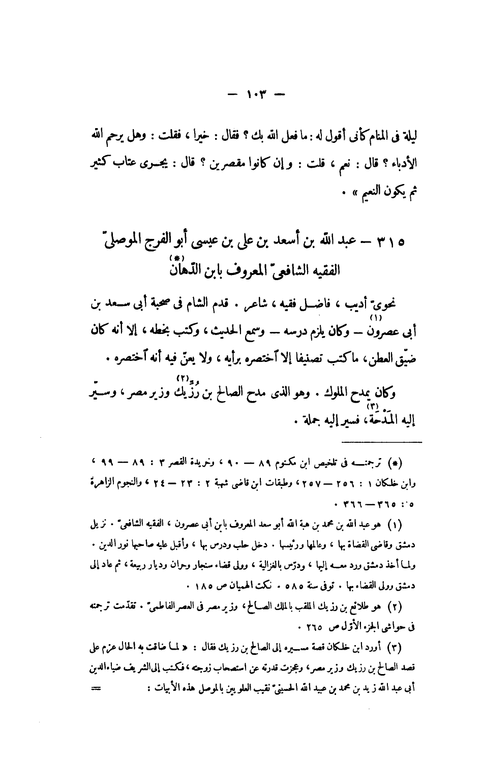 315 - عبد الله بن أسعد بن على بن عيسى أبو الفرج الموصلىّ الفقيه الشافعىّ المعروف بابن الدّهان [1]