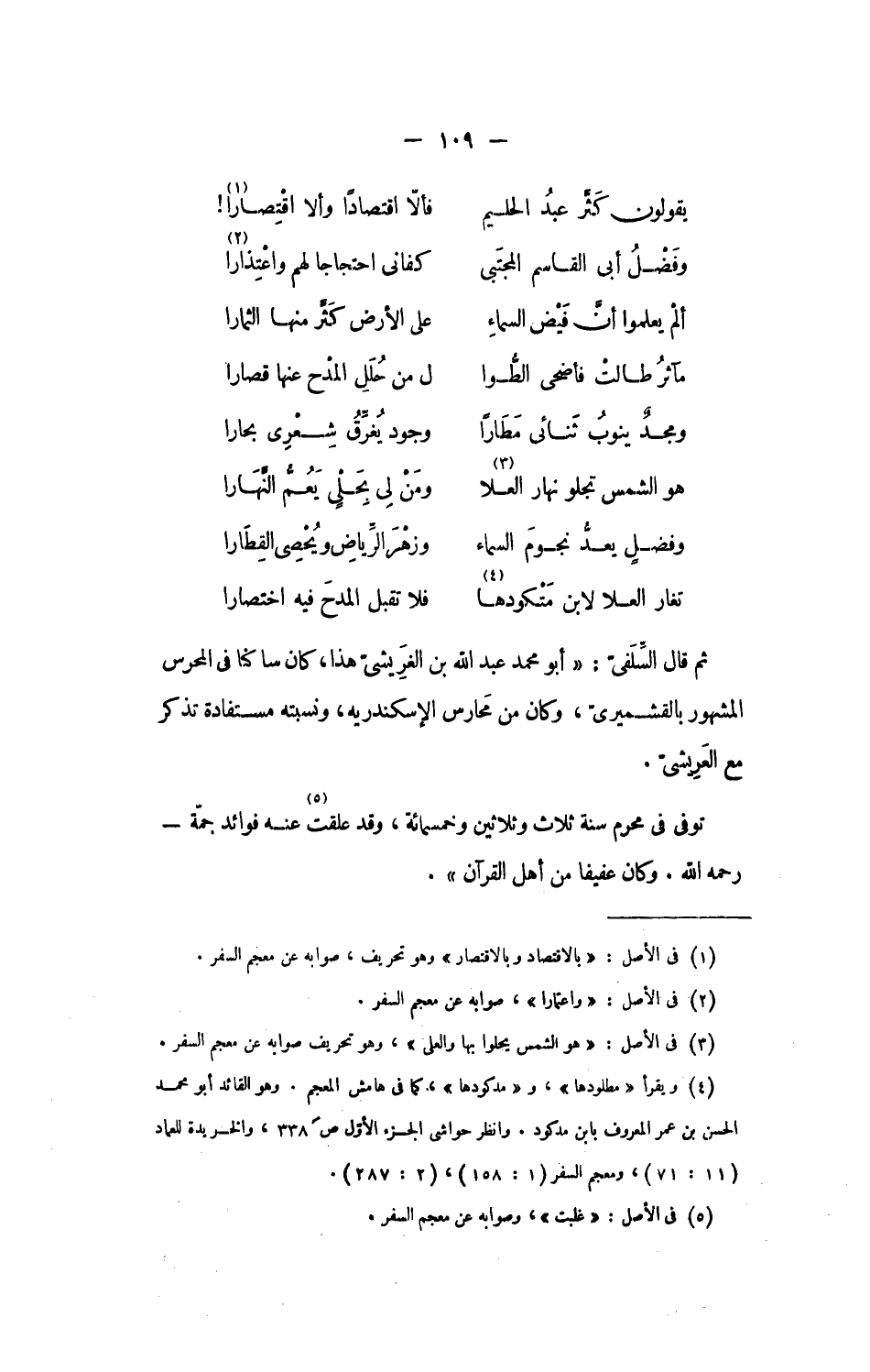 يقولون كثّر عبد الحليم ... فألّا اقتصادا وألا اقتصارا «1»!