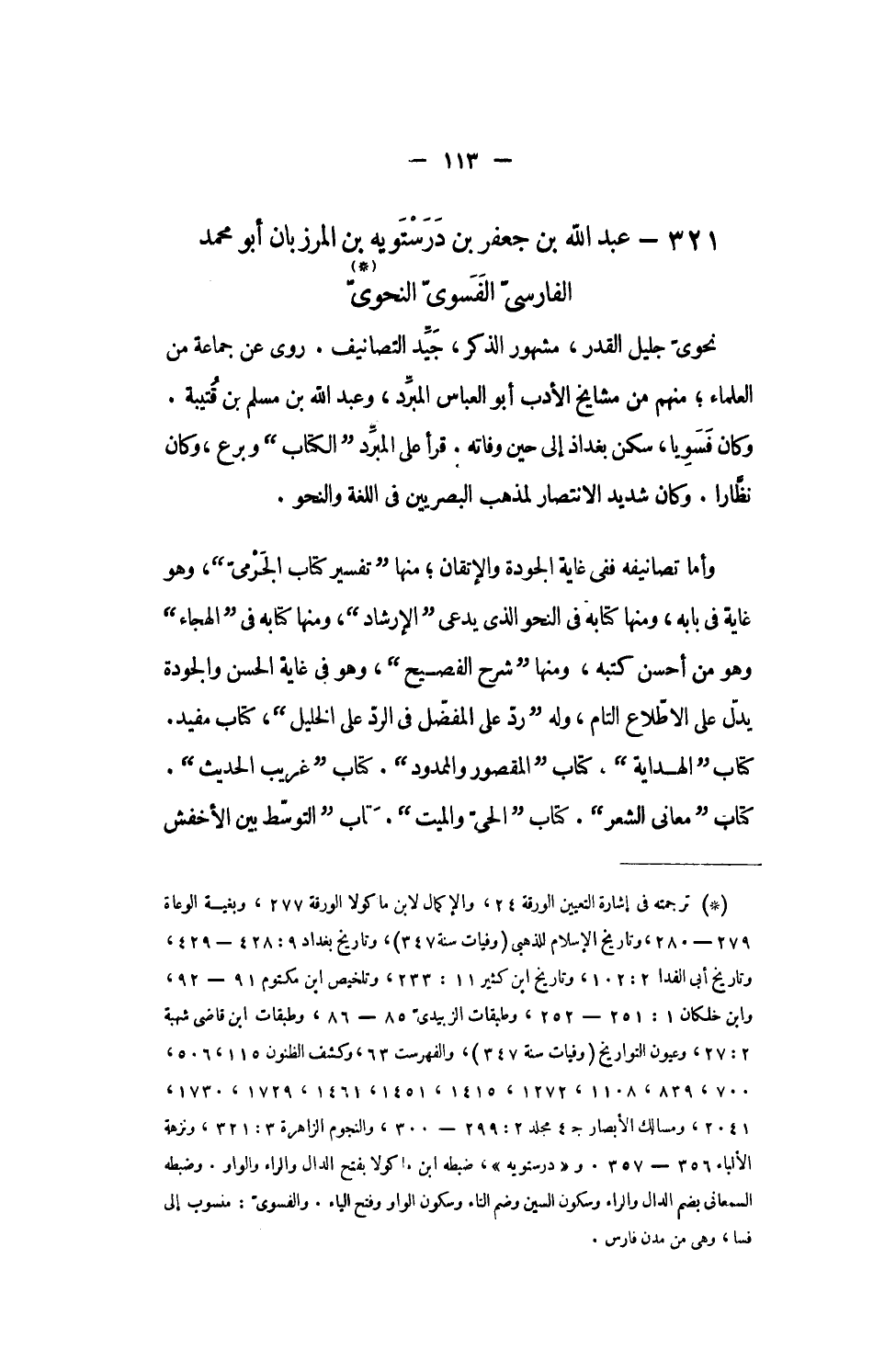321 - عبد الله بن جعفر بن درستويه بن المرزبان أبو محمد الفارسىّ الفسوىّ النحوىّ [1]