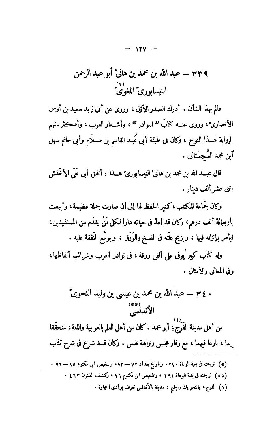 339 - عبد الله بن محمد بن هانئ أبو عبد الرحمن النيسابورىّ اللغوىّ [1]