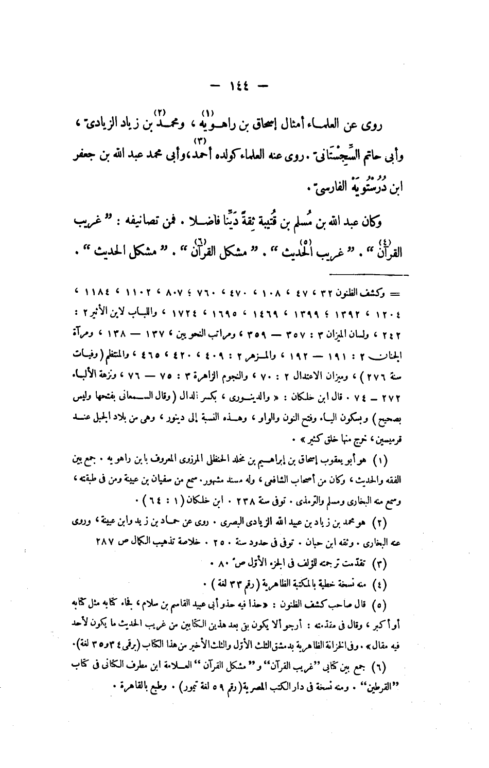 وكان عبد الله بن مسلم بن قتيبة ثقة ديّنا فاضلا. فمن تصانيفه: غريب القرآن «4». غريب الحديث «5». مشكل القرآن «6». مشكل الحديث.