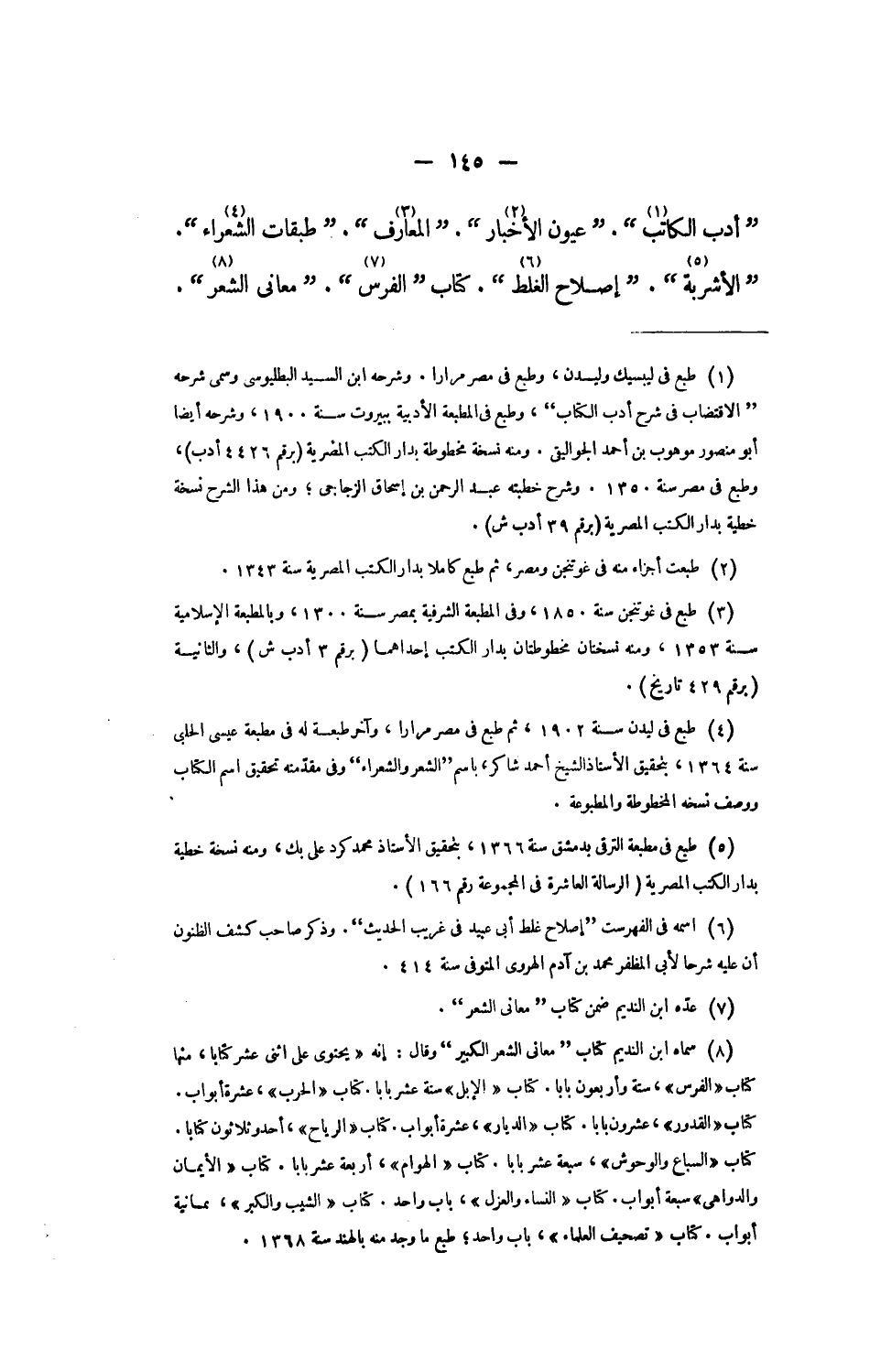 أدب الكاتب «1». عيون الأخبار «2». المعارف «3». طبقات الشعراء «4».