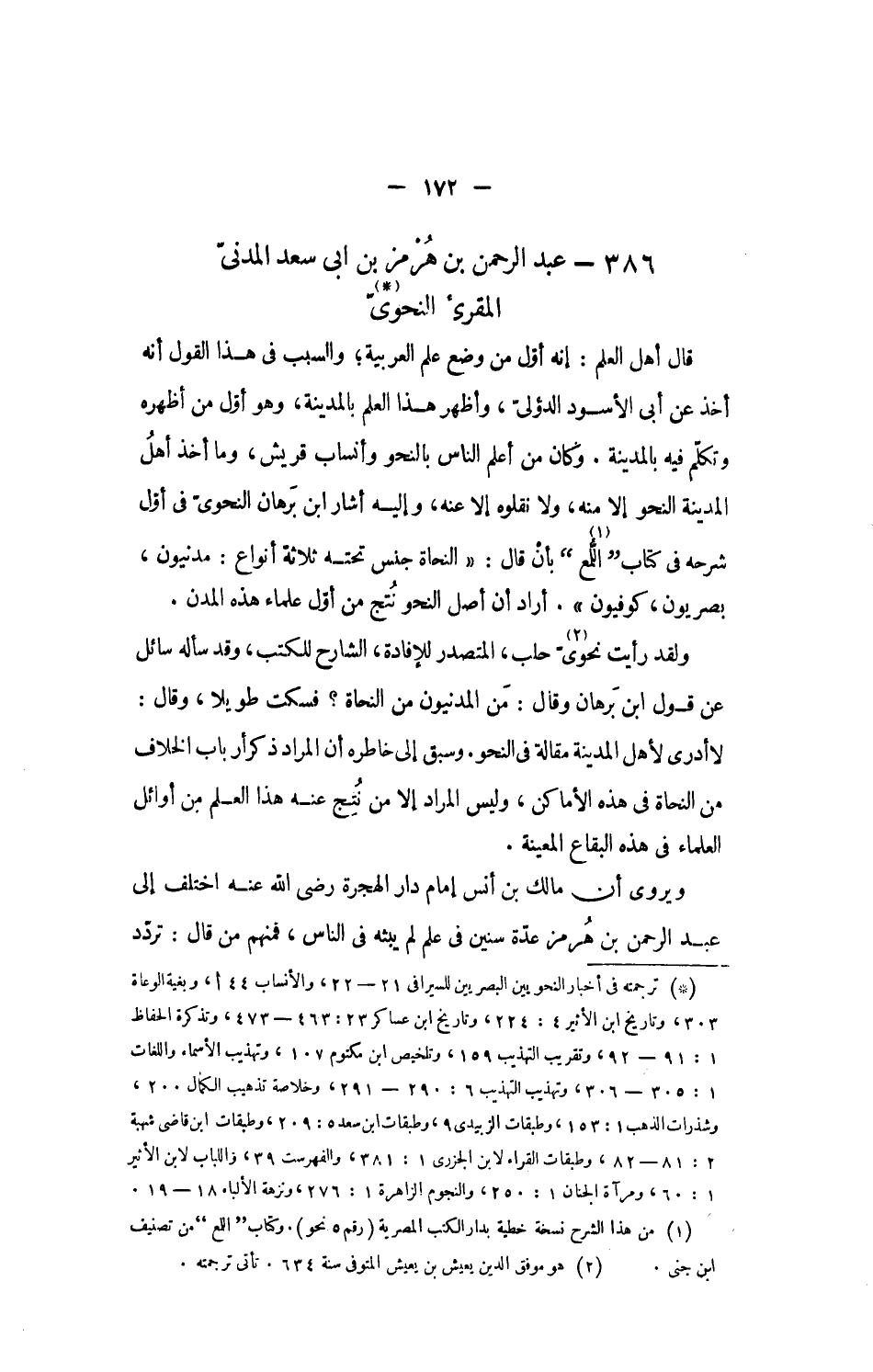 386 - عبد الرحمن بن هرمز بن ابى سعد المدنىّ المقرئ النحوىّ [1]